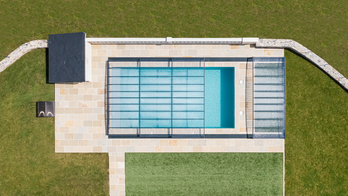 Ce dispositif de sécurité est automatisé : les lames se déploient ou se rétractent à l’aide d’un moteur et d’un axe d’enroulement. Dans le cas d’un volet immergé, cette partie se situe sous la ligne d’eau, ce qui rend tout le système entièrement invisible.